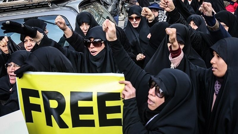 اقيمت وقفة احتجاجية امام مكتب الامم المتحدة بطهران احتجاجا على اعتقال اميركا التعسفي لمذيعة قناة “برس تي في”، مرضية هاشمي.