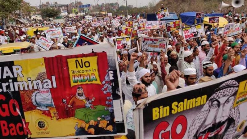 في وقت، تظاهر باكستانيون احتجاجا على زيارة بن سلمان، ورفعوا يافطات تصف بن سلمان بـ”مجرم حرب” و”قاتل أطفال اليمن”.