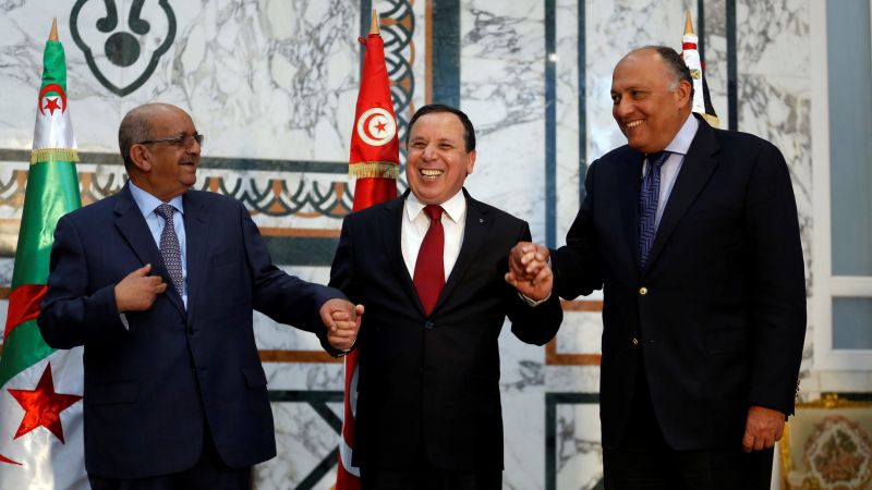 أكد مسؤول في الخارجية المصرية عقد اجتماع ثلاثي لوزراء خارجية مصر وتونس والجزائر في القاهرة، لبحث تطورات الأوضاع في ليبيا بالتوافق بين الفرقاء الليبيين .
