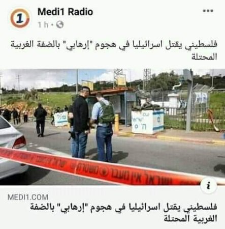 حذف موقع قناة “ميدي 1 راديو” الرسمية المغربية، خبر العملية الفدائية التي نفذها شاب فلسطيني ضد جنود العدو الإسرائيلي قرب مستوطنة ارئيل القريبة من بلدة سلفيت الفلسطينية، بعد وصف الشاب بـ”الإرهابي”.