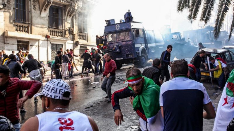 شهدت الاحتجاجات وسط العاصمة الجزائرية مواجهات بين الشبان وقوات الشرطة، وذلك في الأسبوع الثامن للمظاهرات التي تطالب بتنحي كامل رموز النظام.