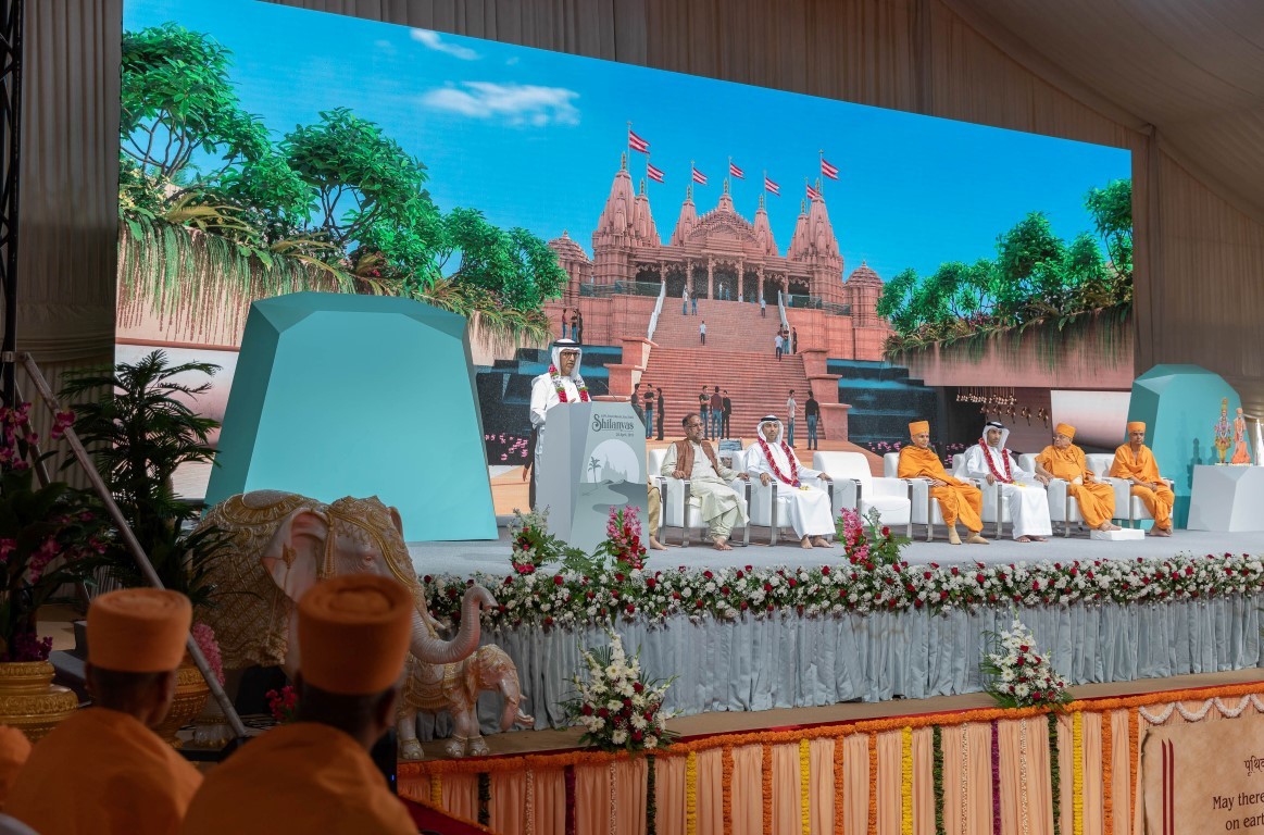 وأفادت وكالة "وام" الإماراتية الرسمية بأن مراسم وضع حجر الأساس جرت في إمارة أبو ظبي بحضور وزير التغير المناخي والبيئة، ثاني بن أحمد الزيودي، ووزير الدولة لشؤون التعليم العالي والمهارات المتقدمة، أحمد بن عبد الله حميد بالهول الفلاسي، ورئيس دائرة تنمية المجتمع، مغير خميس الخييلي، والرئيس الروحي لمنظمة "BAPS"، التي تقوم ببناء المعبد، ماهانت سوامي مهراج، وسفير جمهورية الهند لدى الإمارات، نفديب سينغ سوري، بالإضافة إلى عدد من القيادات والمسؤولين ورعايا الطائفة الهندوسية في البلاد.