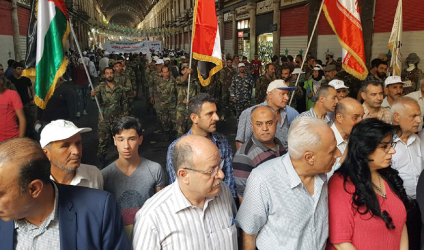 أكد المشاركون في مسيرة احياء يوم القدس العالمي، التي انطلقت اليوم الجمعة من مدخل سوق الحميدية بدمشق وصولا إلى الجامع الأموي، بمشاركة شعبية واسعة أن القدس عاصمة تاريخية لفلسطين وستبقى رغما عن كل المحاولات التي يمارسها الاحتلال الإسرائيلي.