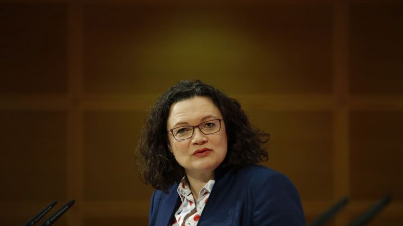 أعلنت زعيمة الحزب الاشتراكي الديموقراطي أندريا ناليس استقالتها بعد إخفاق حزبها في الانتخابات الأوروبية وتزايد الانتقادات الداخلية والمناقشات حول بقاء الحزب في تحالف الحكومة الذي تقوده المستشارة أنجيلا ميركل.