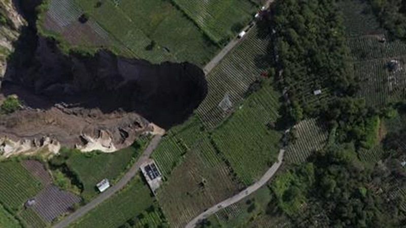 إندونيسيا | حفرة عملاقة تبتلع طرقًا ومزارع وبرج كهرباء في إقليم آتشيه