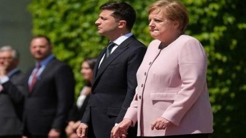 وقبلها بثمانية أيام، عانت ميركل من نوبة ارتجاف شديدة، عندما كانت بجوار الرئيس الأوكراني فولوديمير زيلينسكي، خلال زيارته لبرلين.