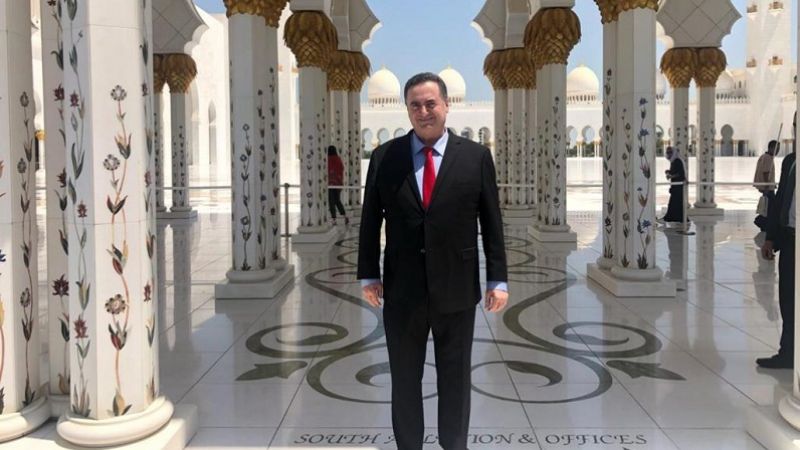 ويظهر شريط فيديو كاتس وهو يقف بالقرب من جامع الشيخ زايد بن سلطان آل نهيّان في أبو ظبي قائلاً بالعبرية "أنا متحمس للوقوف هنا في أبو ظبي ولتمثيل مصالح دولة إسرائيل تجاه دول الخليج العربي"، بحسب تعبيره.