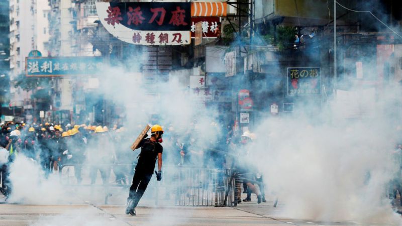 وهاجم محتجون الشرطة بقنابل بنزين وأشعلوا حرائق في الشوارع وخربوا مباني حكومية وشركات يرون أنها مؤيدة لبكين.