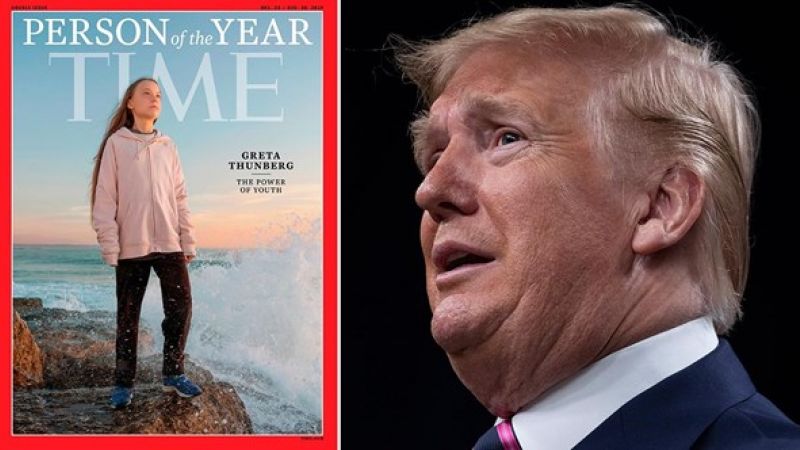 لكن سخرية ترامب هذه المرة، ظهرت كامتعاض على خسارته لقب "شخصية العام 2019" أمام شابة بعمر الـ16 وناشطة بيئية تركت أثراً كبيراً في العالم بعد أن كانت تتظاهر وحيدة كل يوم جمعة أمام مقر البرلمان السويدي، لمطالبة قادة العالم باتخاذ تدابير جذرية للحد من ظاهرة الاحتباس الحراري.