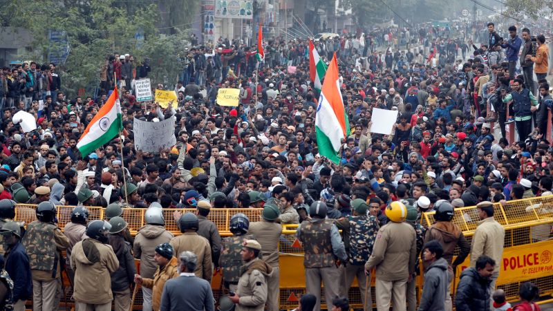 خرج طلبة وتلاميذ 36 جامعة ومعهدا في مختلف أنحاء الهند في تظاهرات، اليوم الثلاثاء، احتجاجا على قانون الجنسية الجديد الذي يسمح بمنح الجنسية للمهاجرين غير المسلمين من ثلاث دول مجاورة.