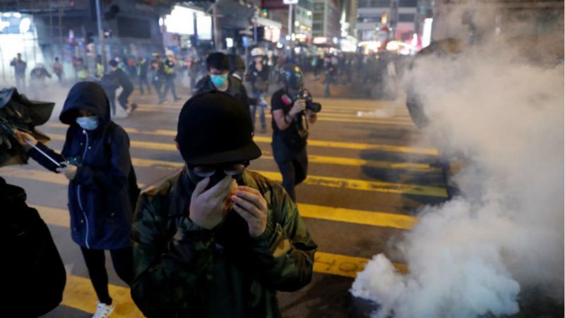 أطلقت الشرطة في هونج كونج، الغاز المسيل للدموع ورذاذ الفلفل وكرات الفلفل على المحتجين خلال مسيرة مؤيدة للديمقراطية في الحي التجاري المركزي بالمدينة.