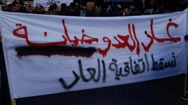 دعت الحملة الوطنية الأردنية لإسقاط اتفاقية الغاز مع الكيان الصهيوني (#غاز-العدو-احتلال)، إلى المشاركة في مظاهرة أسمتها "الغضب الشعبي الثالثة”، بعنوان "تسقط صفقة الخيانة والإجرام”، وذلك عند الـ12.30 بعد صلاة الجمعة اليوم، من أمام المسجد الحسيني بوسط البلد في عمّان.