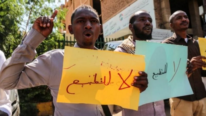 شارك العشرات من السودانيين، في وقفة احتجاجية بالعاصمة الخرطوم، رفضا للتطبيع مع إسرائيل، وللمطالبة بـ “إسقاط” رئيس مجلس السيادة الانتقالي عبد الفتاح البرهان على خلفية لقائه مع رئيس الوزراء الإسرائيلي بنيامين نتنياهو، في أوغندا.