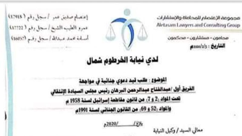 وطالب المحامون من النيابة السودانية تقييد الدعوى وتوجيه التحري لاتخاذ الإجراءات اللازمة لرفع الحصانة عن البرهان.