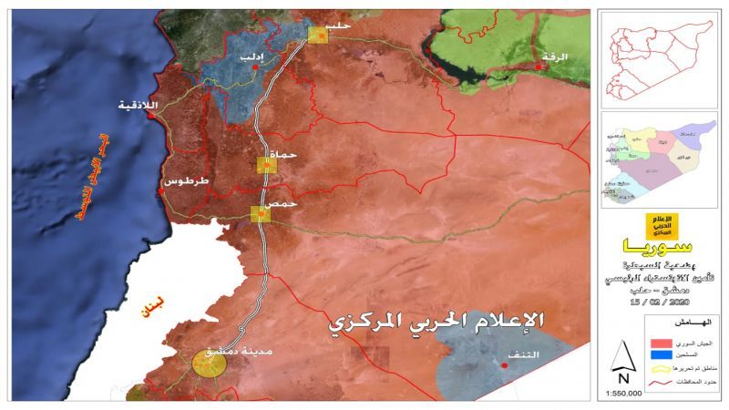 نشر الاعلام الحرب وضعية تظهر تأمين الجيش السوري للأوتوستراد الدولي حلب- دمشق بالكامل بعد معارك مع "جبهة النصرة" والمجموعات المسلحة التابعة لها.