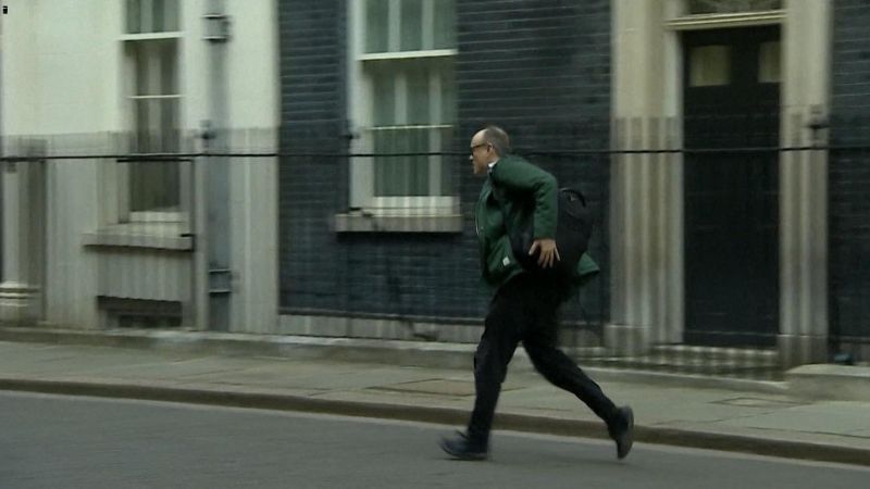 وبحسب الصور يظهر دومينيك كامنيغز كبير مستشاري جونسون، وهو يخرج من مبنى رئاسة الحكومة (10 داونينغ ستريت) بعد لحظات من سماعه نبأ إصابة جونسون بفيروس كورونا.