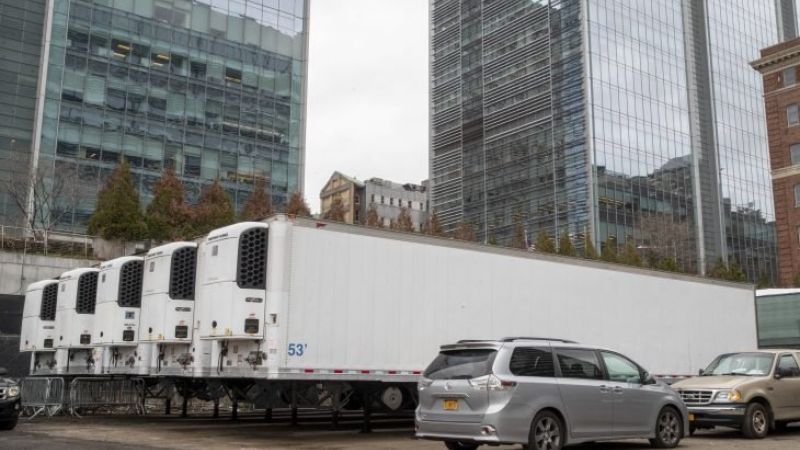 جلبت ولاية نيوجرسي الأمريكية 20 شاحنة تبريد قادرة على نقل 1680 جثة بعد أن عجزت بيوت الجنازات عن استقبال المزيد من الموتى بسبب فيروس كورونا.