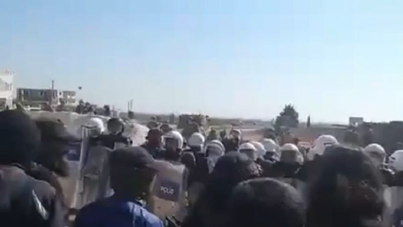 ونشرت تنسيقيات المسلحين مقطع فيديو يظهر فيه التراشق بالحجارة بين عناصر القوات التركية وعدد من المعتصمين الرافضين لتسير الدوريات المشتركة الروسية _التركية على الطريق الدولي الـ “M4” عند بلدة النيرب بريف إدلب الجنوبي الشرقي، وذلك عقب فض القوات التركية للاعتصام قرب البلدة.