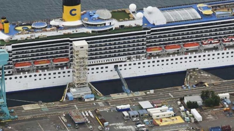 وتحمل السفينة طاقما يتكون من 623 شخصا، وكانت تعتزم التوجه في البداية إلى الصين للصيانة، لكنها توقفت في اليابان بسبب فيروس كورونا.