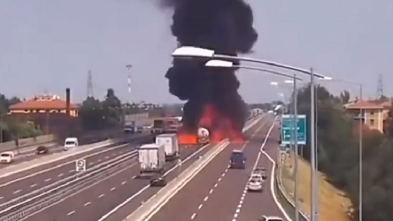 وبدأ الحادث المأساوي باصطدام شاحنة النفط بسيارات أخرى واشتعال النيران فيها، وبعد ثوان وقع الانفجار وتصاعدت سحب دخان أسود في الجو، فيما أتت ألسنة النار على العديد من السيارات.
