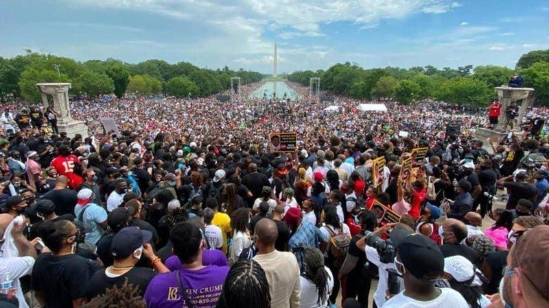 وتجمّع آلاف الأشخاص في مسيرة واشنطن، والتي جاءت بالتزامن مع الذكرى الـ57 لخطاب "لديّ حلم" الشهير الذي ألقاه زعيم حركة النضال من أجل الحقوق المدنية مارتن لوثر كينج.
