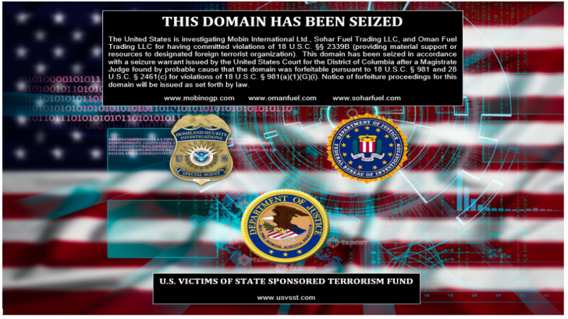 في سياق حصارها المتمادي للجمهورية الاسلامية الايرانية والدول التي ترفض الإذعان لسياساتها، أقدمت السلطات الأمريكية، وتحديدًا وزارة العدل، على إغلاق مواقع الكترونية لـ3 شركات إيرانية وهي موبان العالمية، سوهر فيول وعُمان للنفط لأنها قامت بمهمة إرسال شحنات الوقود إلى فنزويلا.