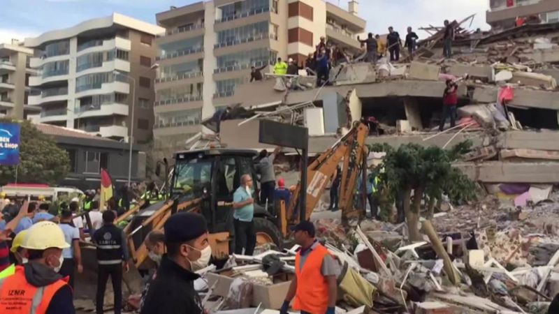 ضرب زلزال جديد بقوة 5.0 درجات على مقياس ريختر مدينة إزمير التركية، بعد الزلزال الأول الذي كان أمس الجمعة بقوة 6.6 درجة والذي خلف خسائر بشرية ومادية.