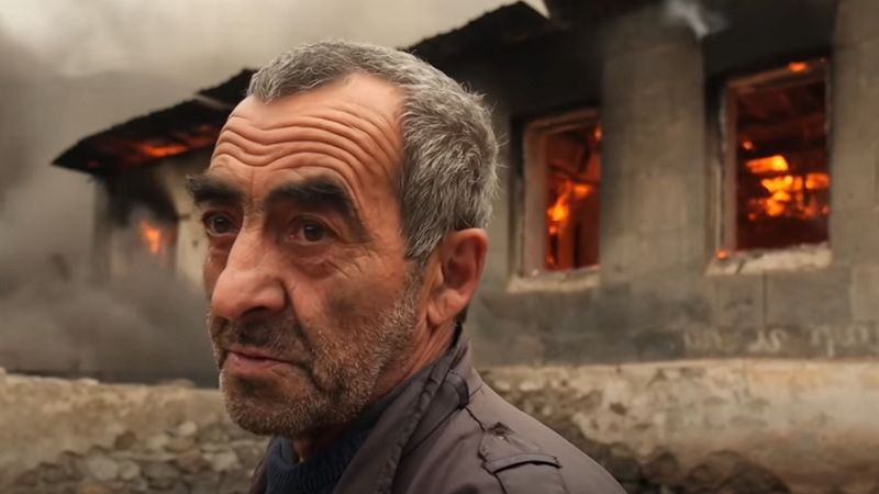 أقدم بعض السكان الأرمن على حرق منازلهم قبل أن يسلموا الأرض إلى دولة اذربيجان.