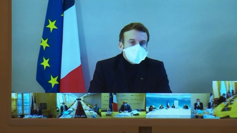 وبثت قناة BFM التلفزيونية صورًا مباشرة لماكرون خلال ترؤسه اجتماعًا وزاريًا للحكومة عبر مؤتمر افتراضي.