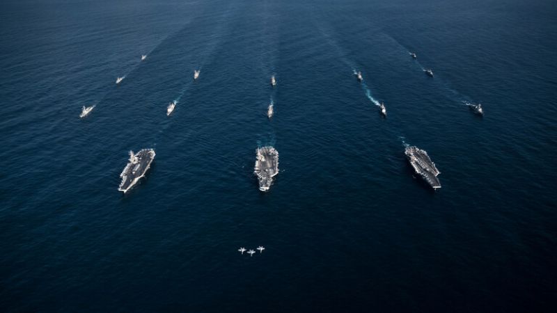 أعلنت البحرية الأمريكية عن القيام بعمليات تدريب وتنسيق مزدوجة، اليوم الثلاثاء، في بحر الصين الجنوبي، بين سفن وطائرات مجموعتين من حاملات الطائرات.