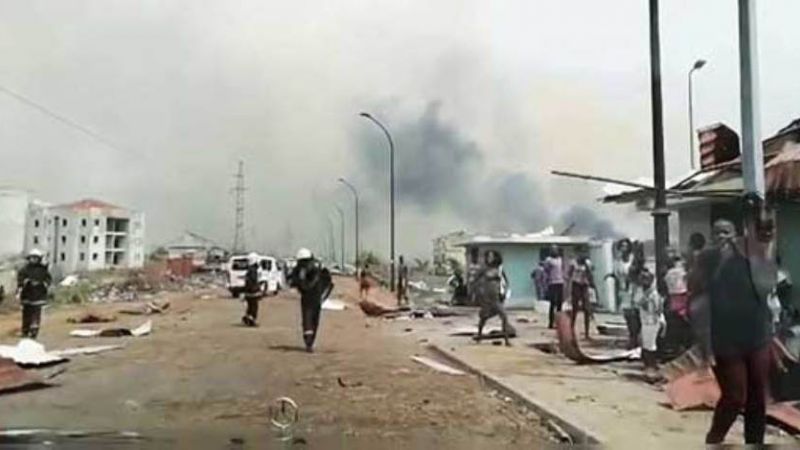ودمّرت أربعة انفجارات قويّة بعد ظهر الأحد مبانيَ في معسكر نكوا نتوما العسكري الواقع في العاصمة الاقتصاديّة باتا بالإضافة إلى عدد لا يُحصى من المنازل المحيطة به.