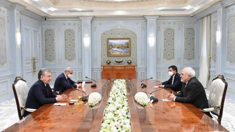 وكتب ظريف: ابتهجت بلقاء الرئيس الاوزبكي ميرضيايف ووزير الخارجية كاميلوف.