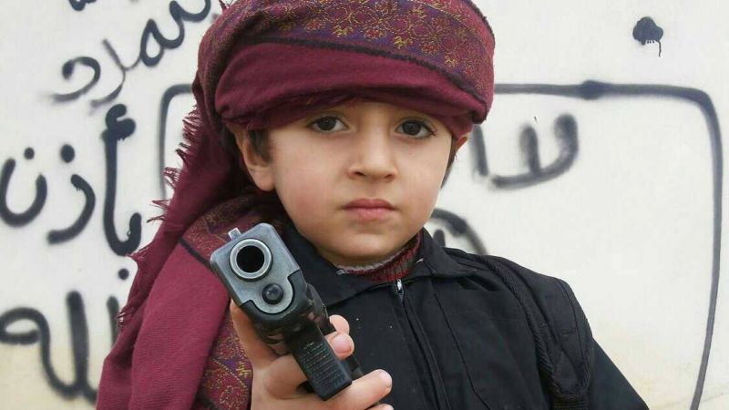 لا حدود لإجرام الأمريكي، الراعي الرسمي لداعش واخواتها في المنطقة، هم امتهنوا لغة القتل، حيث تستمر اثار ما توصل اليه العقل الداعشي المتوحش من أساليب إرهابية، ومن جرائم، وأبرزها تجنيد الأطفال، بعد ان تحجرت قلوبهم وعقولهم، وحطموا كل منطق الإنسانية.