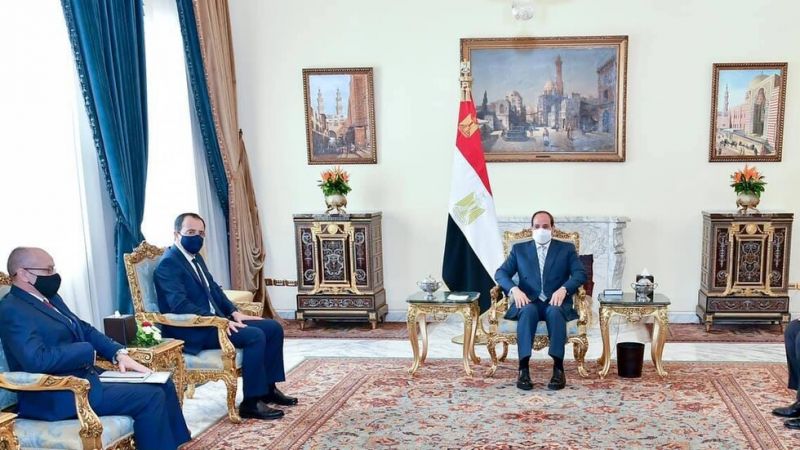 وشدد الرئيس المصري على العلاقات الاستراتيجية الراسخة بين مصر وقبرص، و"حرص القاهرة على تعزيز آليات التعاون بين البلدين، خاصة على الصعيد السياسي والعسكري والتجاري والطاقة، فضلا عن الارتقاء بالتعاون القائم في إطار الآلية الثلاثية مع اليونان، على نحو يحقق المصالح والأهداف المشتركة في منطقة شرق المتوسط".