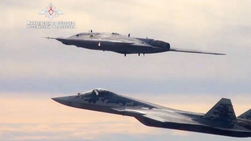 وقال:" بدأ طيارو مقاتلة "سو-57" يتدربون على قيادة درونات "الصياد" الثقيلة من قمرة قيادة الطائرة مباشرة. وقد يتراوح عدد الدرونات المنقادة بين درونيْن و4 درونات".