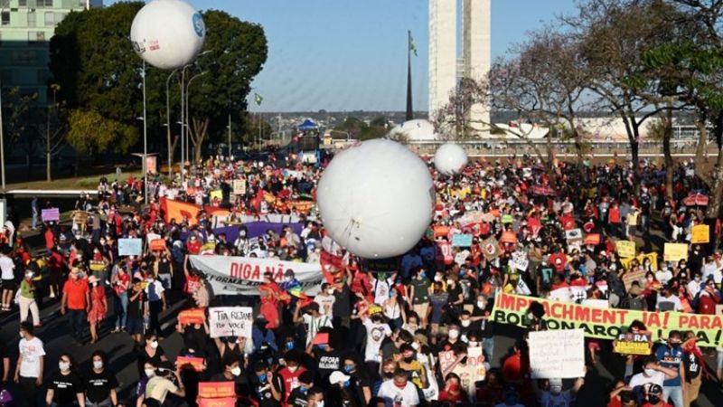 نزل عشرات آلاف البرازيليّين إلى الشوارع، يوم أمس السبت، للمطالبة بعزل الرئيس جايير بولسونارو على خلفيّة تعامله مع الأزمة الصحّية بعد أن أدّت الجائحة إلى وفاة أكثر من نصف مليون شخص في البلاد، حسب وكالة "فرانس برس".