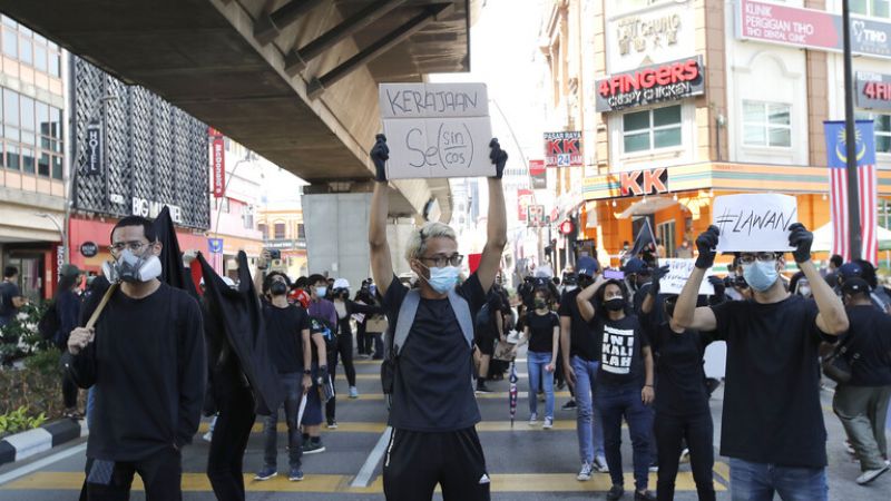 احتشد المئات من الشباب الماليزيين في وسط كوالالمبور، للمطالبة باستقالة رئيس الوزراء محي الدين ياسين بسبب تعامله مع جائحة فيروس كورونا.