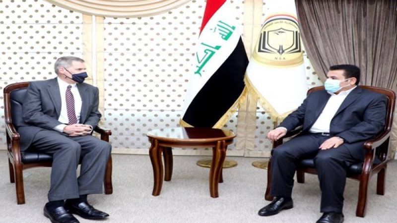 وذكر بيان للمكتب الإعلامي لمستشار الأمن القومي، أنه "جرى الحديث خلال اللقاء، عن مخرجات زيارة رئيس الوزراء والوفد الفني إلى واشنطن، فضلا عن بحث الوضع السياسي والأمني وأمن الانتخابات المقبلة".