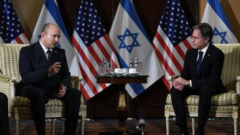 والتقى بينت وزير الخارجية أنتوني بلينكن في العاصمة واشنطن، وأكدا خلال اللقاء أهمية الشراكة بين (الكيان) والولايات المتحدة، وبحثا قضايا الأمن الإقليمي، بما فيها ملف إيران. وقال المتحدث باسم الخارجية الأميركية نيد برايس، إنّ "المسؤولَين شدّدا على العلاقات الثنائية القوية، وقد جدّد بلينكن تأكيد التزام الولايات المتحدة بأمن إسرائيل".