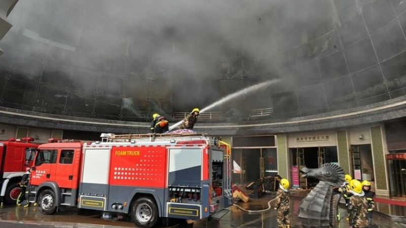 اندلع حريق ضخم في مبنى سكني شاهق في مدينة داليان شمال شرقي الصين صباح اليوم الجمعة.