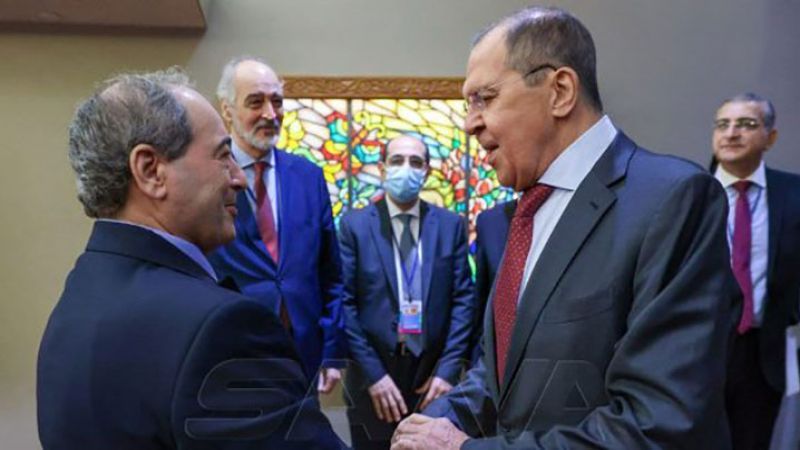بحث وزير الخارجية السورية فيصل المقداد في نيويورك مع نظيره الروسي سيرغي لافروف مختلف الجوانب المتعلقة بتمتين العلاقات الثنائية المميزة بين البلدين الصديقين على جميع الصعد السياسية والاقتصادية والتي شهدت زخماً جديداً من خلال القمة الأخيرة التي عقدت بين الرئيسين بشار الأسد وفلاديمير بوتين في موسكو.