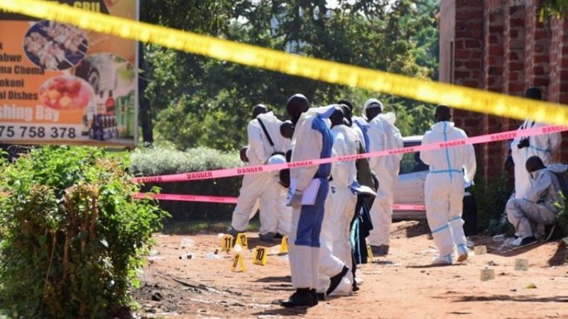 وقالت الشرطة الأوغندية إنّ العبوة الناسفة، التي أسفر انفجارها عن مقتل شخص واحد على الأقل في مطعم على مشارف العاصمة، كانت محشوة بمسامير وقطع معدن.