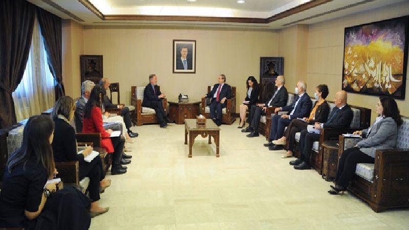 بحث وزير الخارجية والمغتربين السوري الدكتور فيصل المقداد مع ديفيد بيسلي المدير التنفيذي لبرنامج الغذاء العالمي والوفد المرافق علاقة التعاون بين الحكومة السورية وبرنامج الغذاء العالمي والخطط الاستراتيجية المقبلة وسبل تعزيزها.