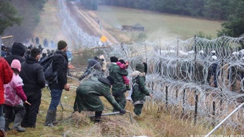 يقيم آلاف المهاجرين، ومعظمهم من الشرق الأوسط، على الحدود أملا في الدخول إلى دول الاتحاد الأوروبي، ويدعي الغرب أنها أزمة دبرتها بيلاروسيا لمحاولة للضغط على الاتحاد الأوروبي والرد على العقوبات.
