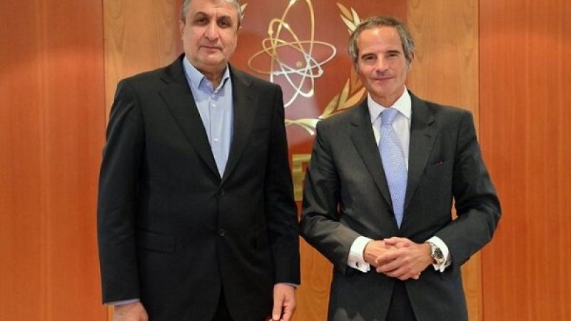 يعقد رئيس منظمة الطاقة الذرية الايرانية محمد اسلامي ومدير الوكالة الدولية للطاقة الذرية رافائيل غروسي مؤتمرًا صحفيًا.