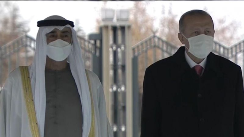 وصل ولي عهد أبوظبي نائب القائد الأعلى للقوات المسلحة الإماراتية محمد بن زايد آل نهيان بعد ظهر اليوم إلى العاصمة التركية أنقرة في زيارة رسمية. وكان في استقباله لدى وصوله الى القصر الرئاسي، الرئيس التركي رجب طيب أردوغان.