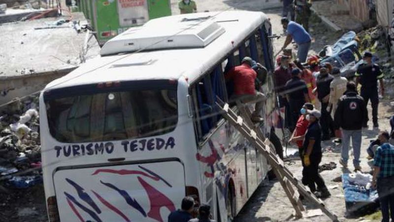 لقى 19 شخصا مصرعهم وأصيب 20 آخرون ، في حادث تحطم حافلة كانت تقل زائرين إلى موقع ديني في وسط المكسيك. وبحسب السلطات المكسيكية وقع الحادث في بلدة خوكيسينخو إلى الجنوب الغربي من مكسيكو سيتي، حيث اصطدمت الحافلة بمنزل. وذكرت تقارير إعلامية محلية أن مكابح الحافلة التي كانت في طريقها إلى مزار ديني محلي في ولاية المكسيك تعطلت. ولم تكشف سلطات الولاية عن الأسباب المحتملة للحادث. وفق رويترز.