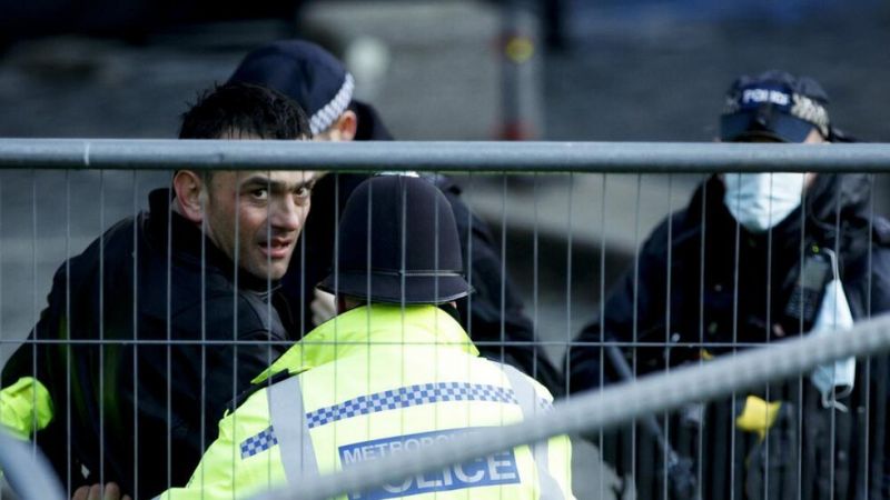 وقالت شرطة العاصمة لندن إن الرجل اعتقل للاشتباه في التعدي على ممتلكات في موقع محمي، مؤكدة أنه لا يتم التعامل مع الحادث على أنه "إرهابي".