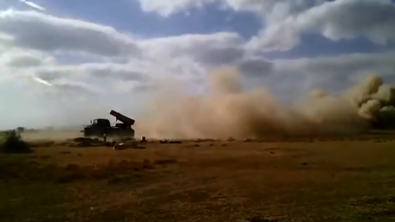 وتابعت الوكالة "يصور الفيديو إطلاق عدد من الصواريخ من راجمات في منطقة رملية، وأرفق الفيديو بالتعليق: قبل قليل لا صوت يعلو على صوت الراجمات والمدفعيات والتكبير والتهليل في الفشقة".