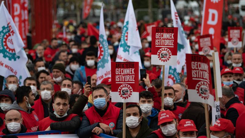تظاهر آلاف الأشخاص يوم الأحد في اسطنبول احتجاجا على التضخم وتراجع القدرة الشرائية في أول تجمع كبير على خلفية الاضطرابات التي يمر بها الاقتصاد التركي منذ أسابيع.